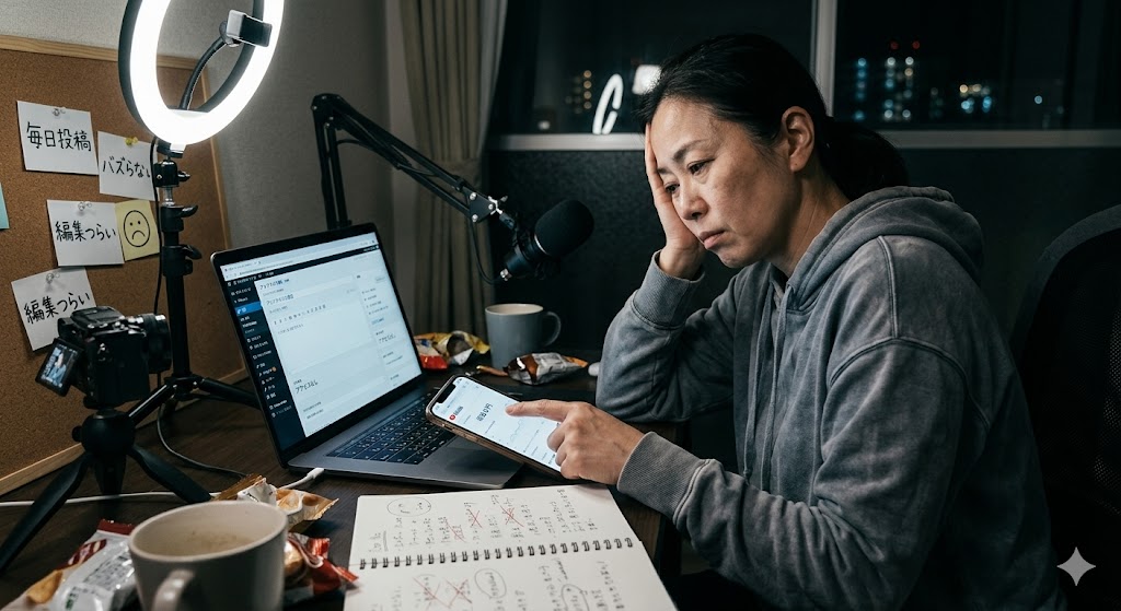 ブログ1,000記事、そしてYouTubeショート動画500本。この数字の裏にあるのは、華やかな成功物語ではなく、指先がすり減るような執筆と、終わりのない動画編集の連続でした。